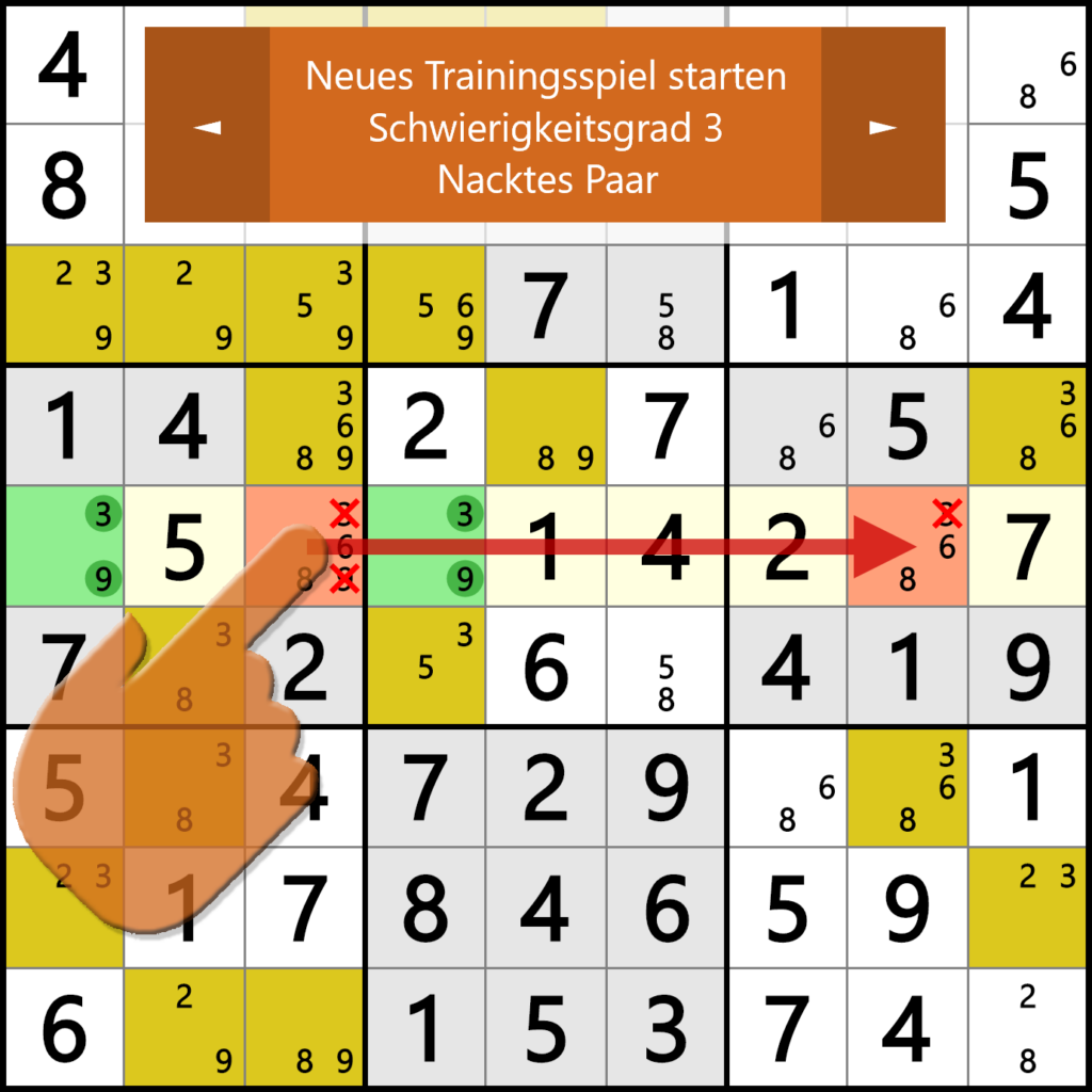 Wähle einen kleinen Kandidaten und markiere damit alle Felder gleichzeitig, in denen der Kandidat vorkommen kann: