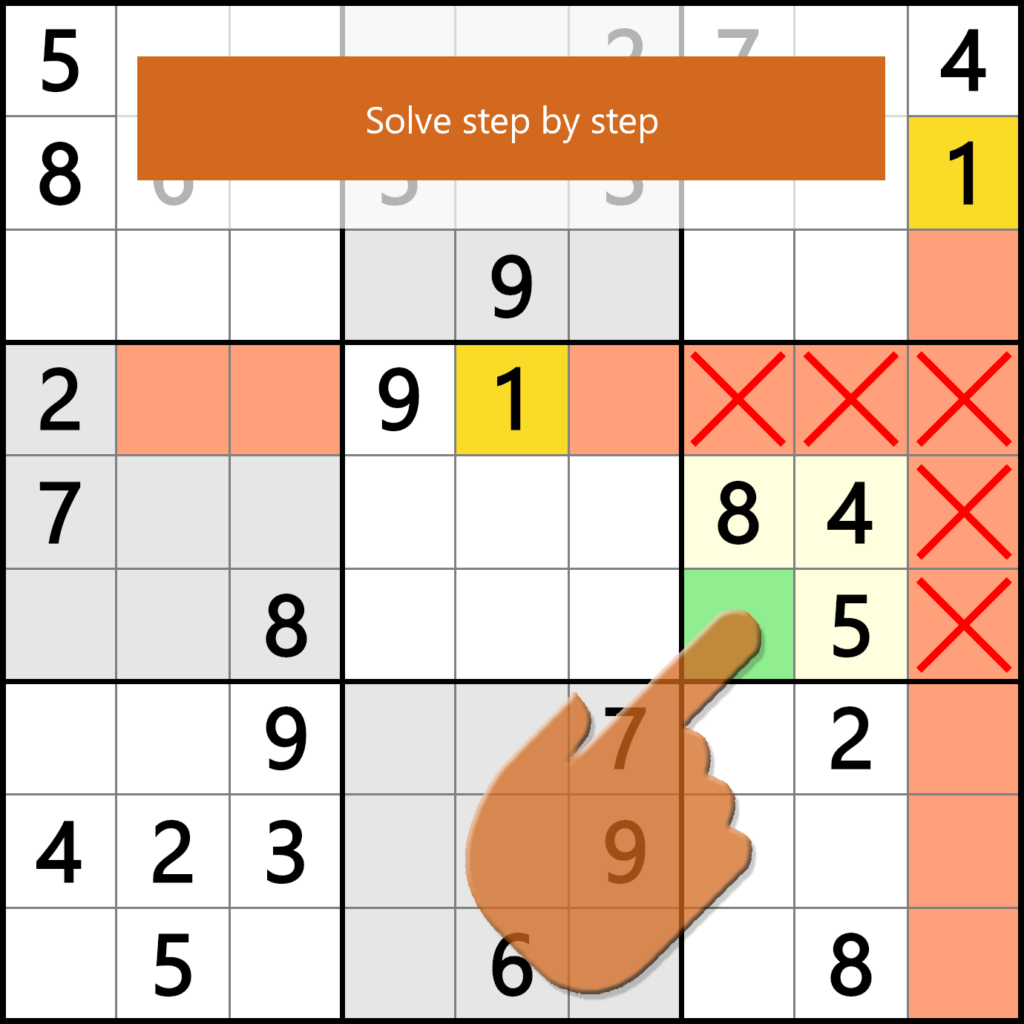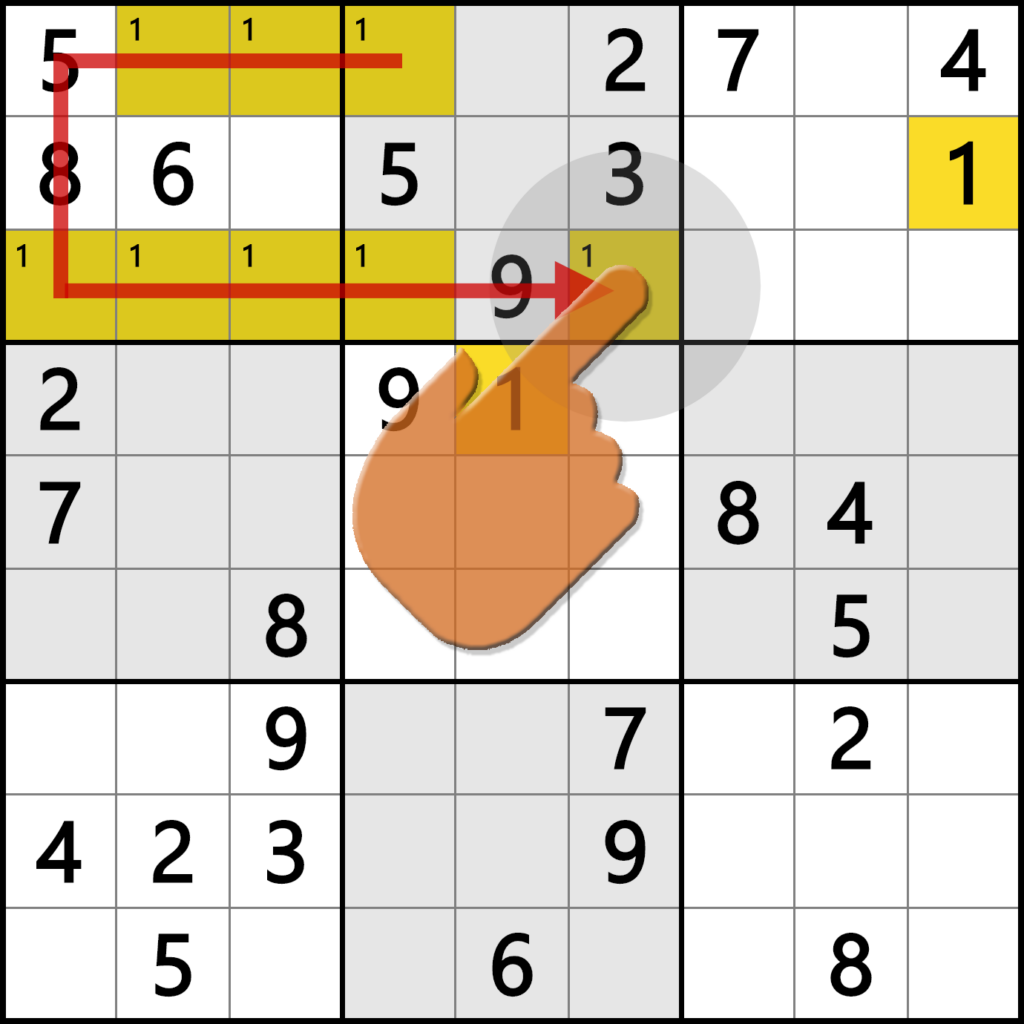 Select a large digit in the control field and place it one after the other in one or more empty cells: